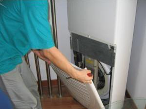 打開室內(nèi)機(jī)回風(fēng)口扣板取下過濾網(wǎng),用毛巾將室內(nèi)機(jī)回風(fēng)口面板擦干凈。